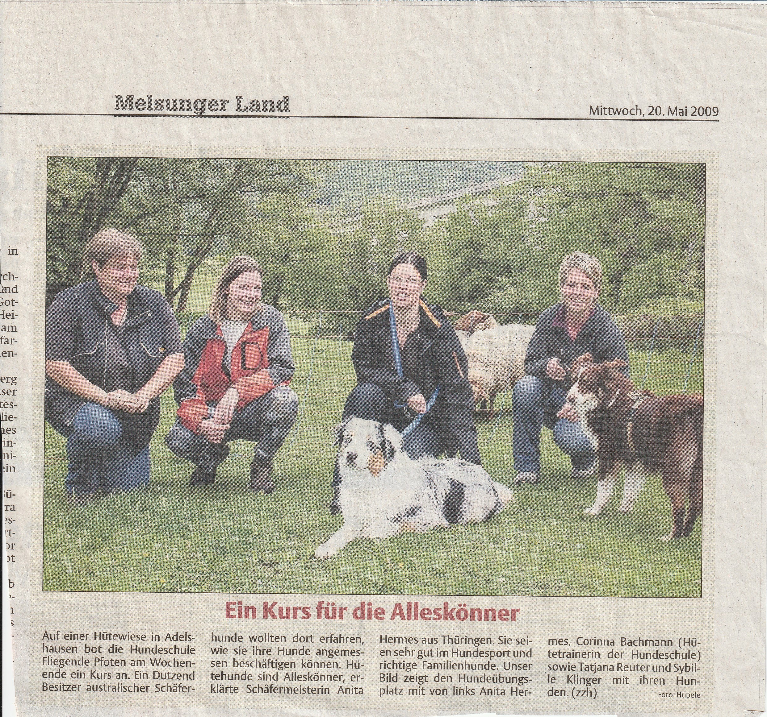 Im der Hessisch Niedersächsichen Allgmeinen (HNA) erschien am 21. September 2020 ein Bericht mit dem Titel Deutsche Meisterschaft der Hütehunde in Hessisch Lichtenau. Meldung in der in der Hessisch Niedersächsichen Allgmeinen (HNA) über das Hüteseminar mit Anita Hermes am 09. Mai 2007